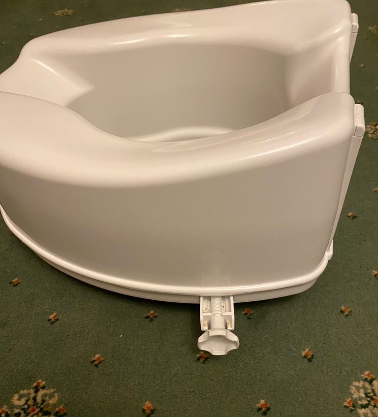 Raised toilet seat in white, easy to install and clean. Lovely clean condition.
