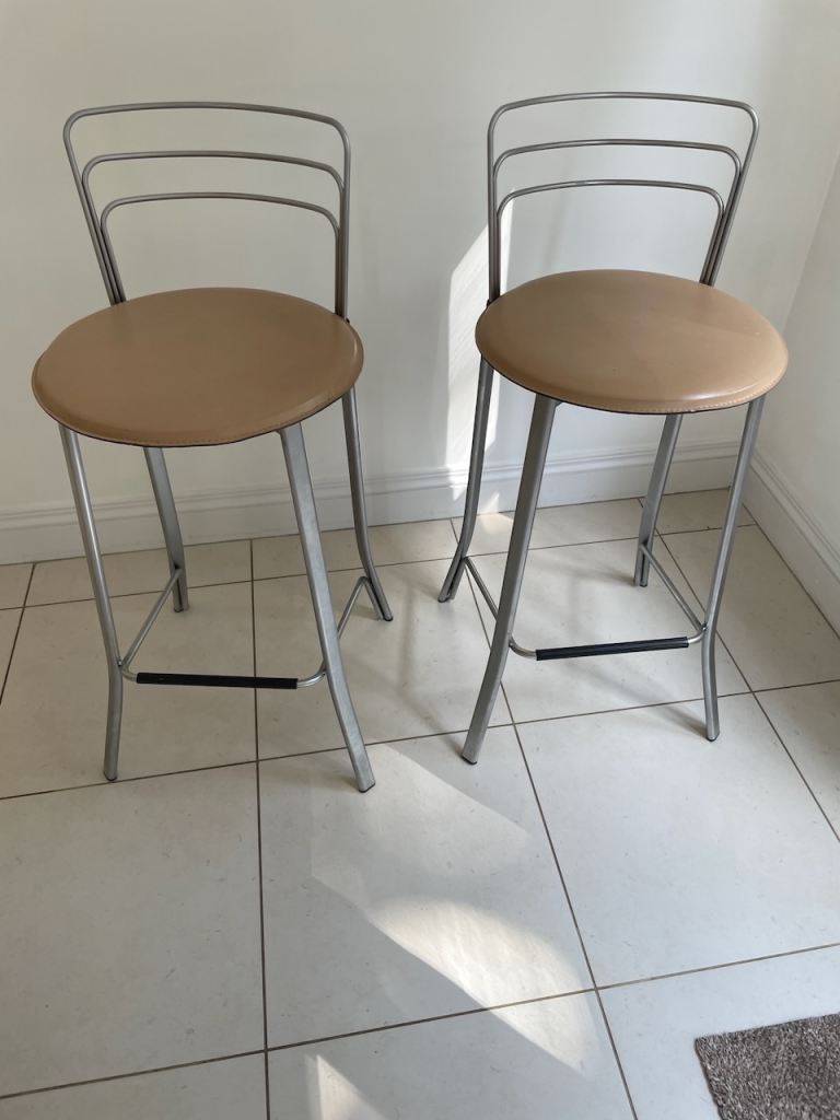 Faux Leather seat bar stools Stainless metal frame Seat 70 cm high. Collection only £25 price is for the pair.
