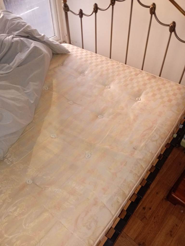 Double bed and mattress with metal frame for sale needs gone barley used or slept in would do someone if there looking a new bed