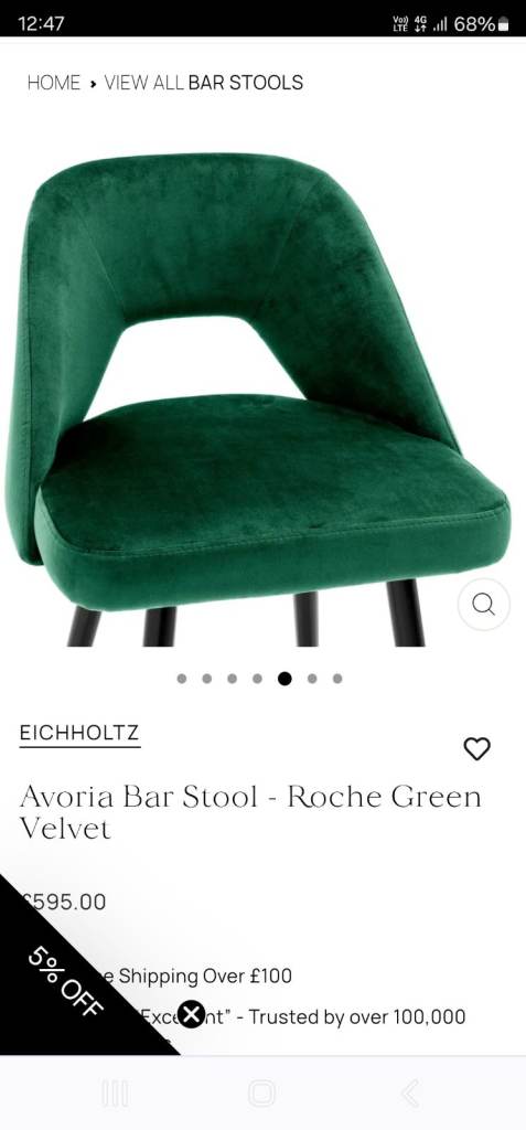 Bar stool Avorio Roche green velvet ,52x52x82cm
