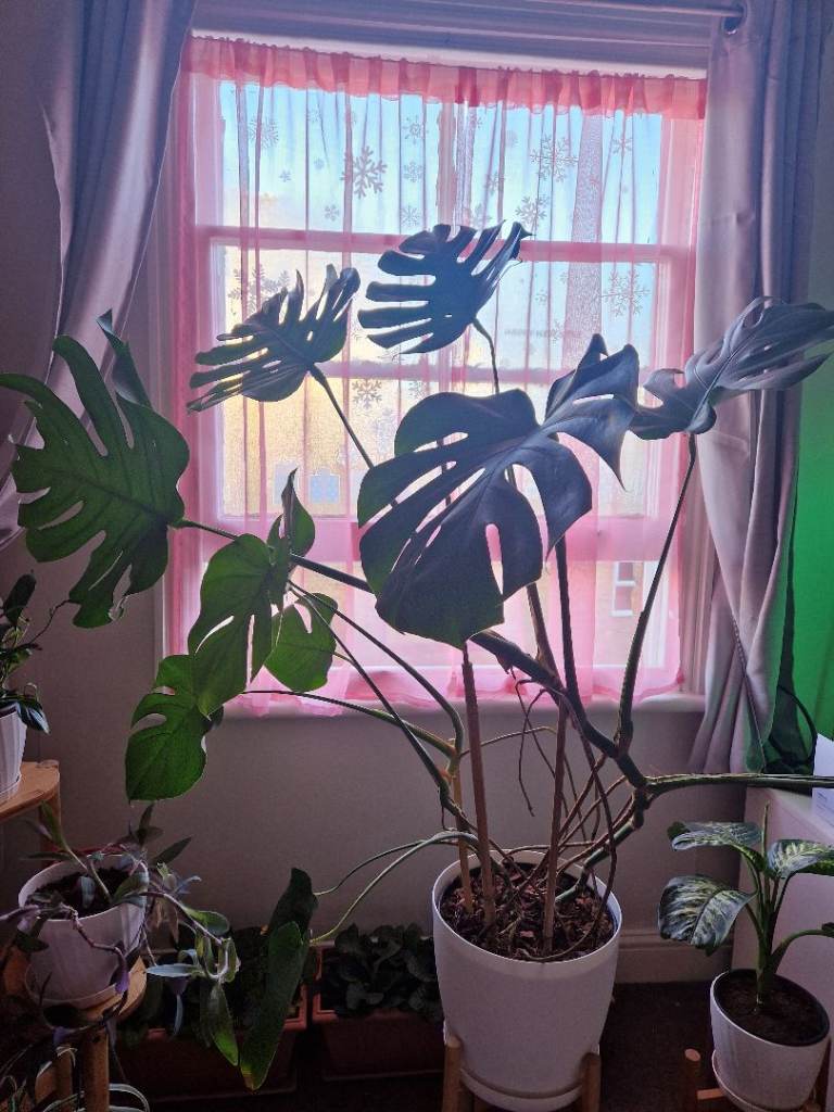 Healthy, mature Monstera with big split leaves. Very well looked after and growing well. Ideal as a statement houseplant for living room or office. Indoor plant Easy to care for Comes in pot as shown Collection only