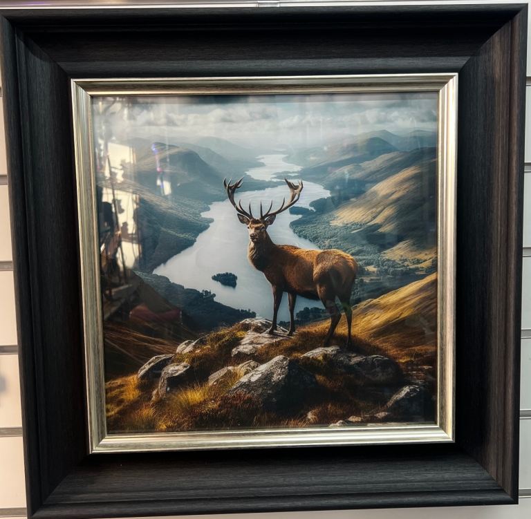 Stag picture in stunning black frame varies designs 56x56cm