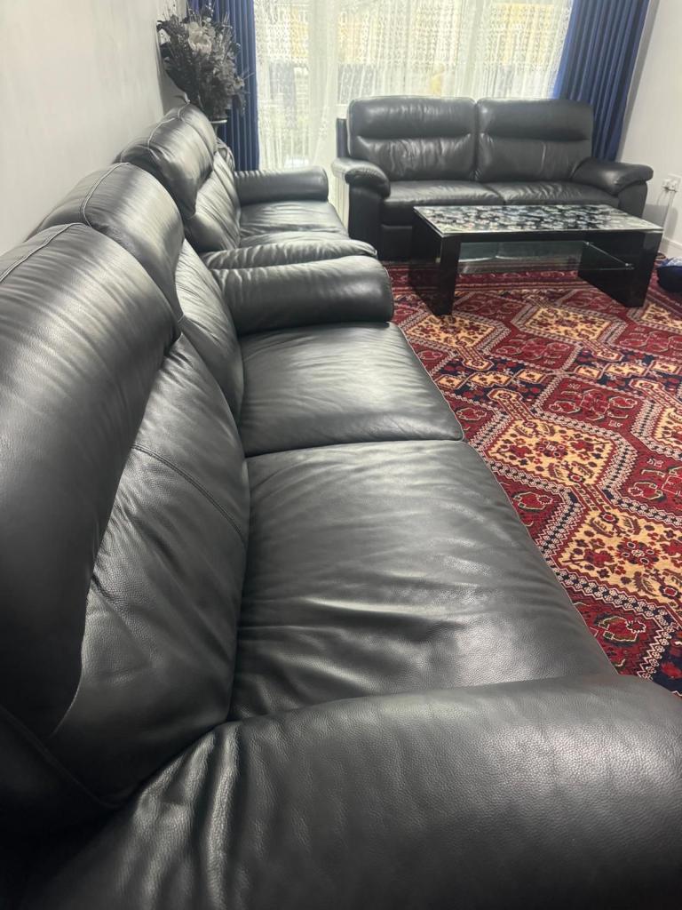 Premium real black leather sofas from DFS in an immaculate condition with 2 matching excellent quality glass coffee tables from smoke and pet/animal free household . I paid £4995 for it, only over a year ago. I need to sell it urgently due to moving