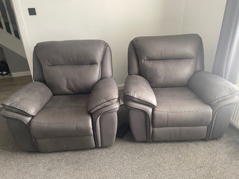 2 seater sofa & 2 single chairs all manual recline. Very good condition photos Don’t show true colour but last photo does of what we took when we picked it. Only 2 years old but selling due to changing living room decor. Viewings are welcome