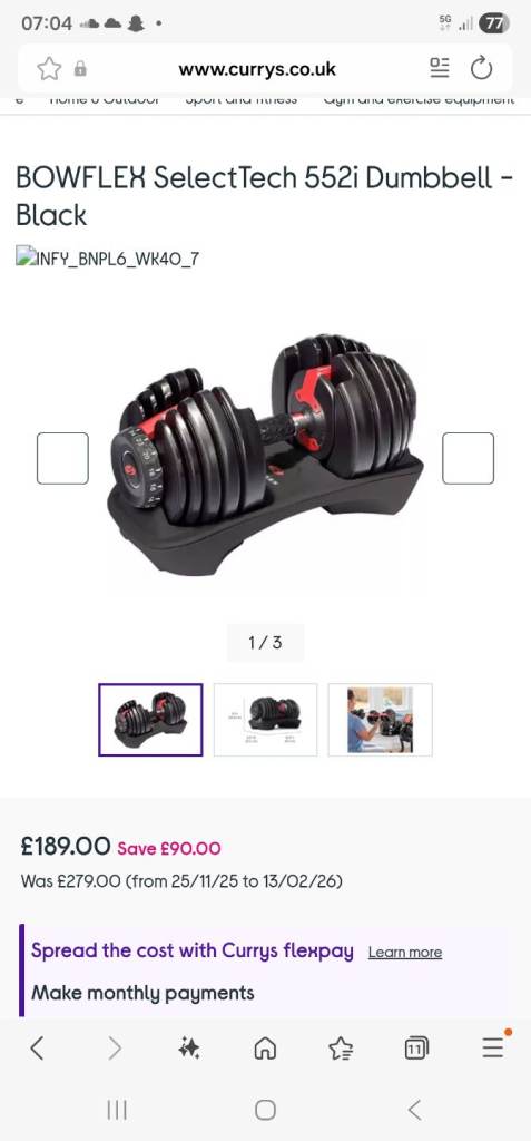 Bowflex dunbell,one of weights is missing can still be used £30