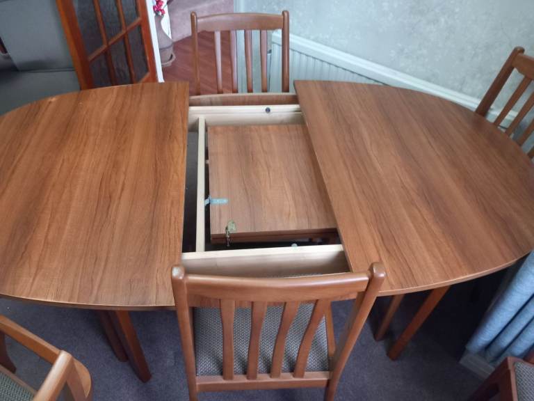 A pull out Table top for 6 chairs to go round, in very nice condition all in wood,2 chairs with arms