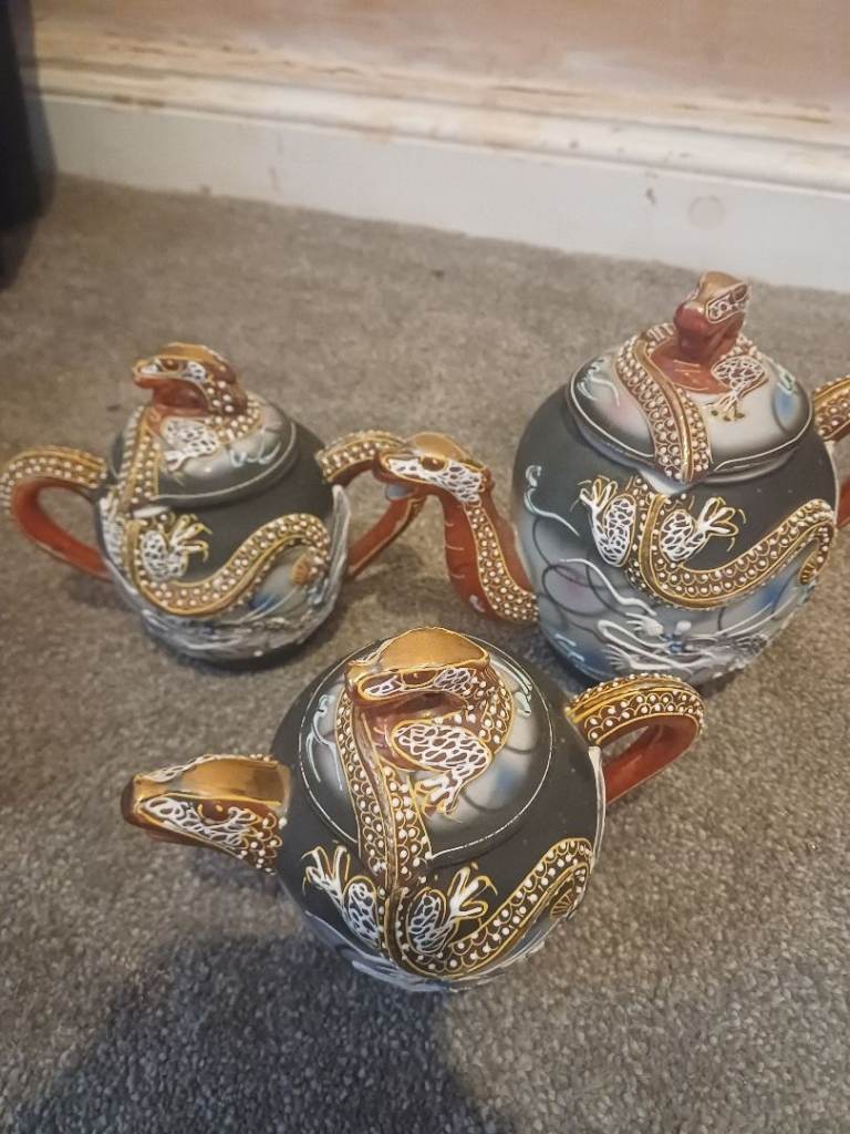 RARE LITHOPHANE DRAGON GEISHA THEMED TEA SET 3