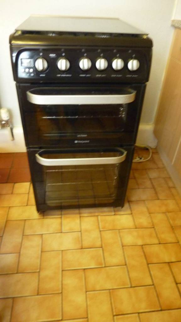The oven has been in use for about 6 years and is being sold as I've bought one more suitable for the space. It is a Hotpoint HUG 52K, 50 cm wide (this is narrower than most cookers, so check it is appropriate for your space). Photos show that all