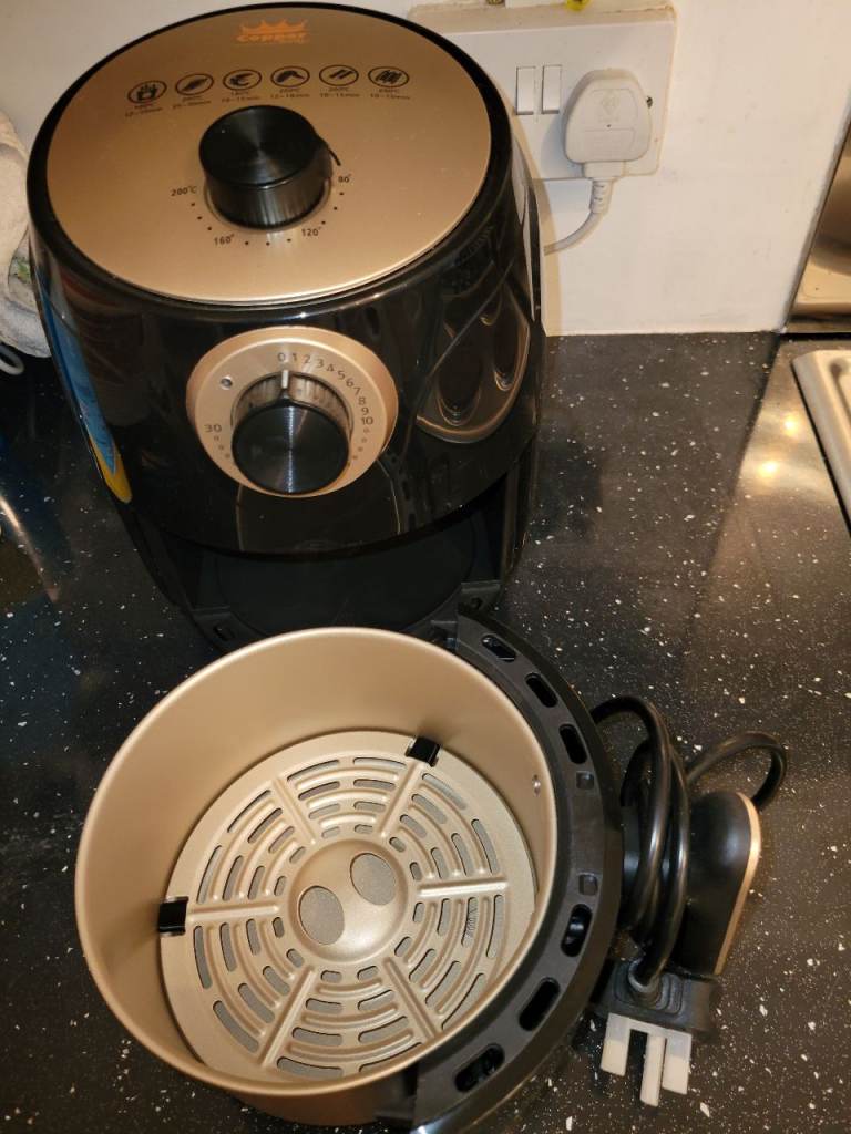 OP500UK series multi-cooker. Air crisp, grill, bake/roast, dehydrate, pressure cook, steam and slow cook functions. 3 years old, well-used but fully functional and in good condition. Some wear and tear evident on the internal baskets and inside o