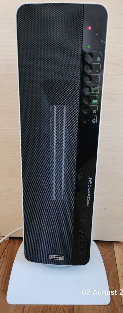 Delonghi Ceramic Technology electric heater. Type:TCH8093ER. Timer and rotation functions. And during the summmer it can be used as a ventilator as well to get some fresh air.
