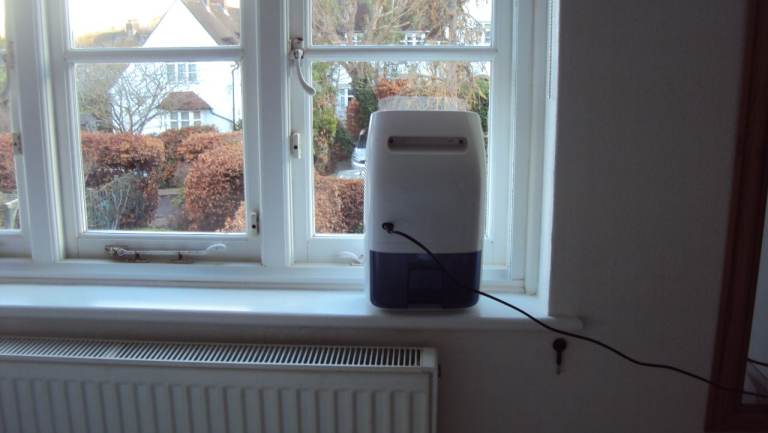 A 3 year old easily portable dehumidifier I have used for small rooms, to take away condensation on windows and walls and even from clothes drying on radiators, suitable for caravans too. It is quiet, boxed, comes with an instruction manual, I have j