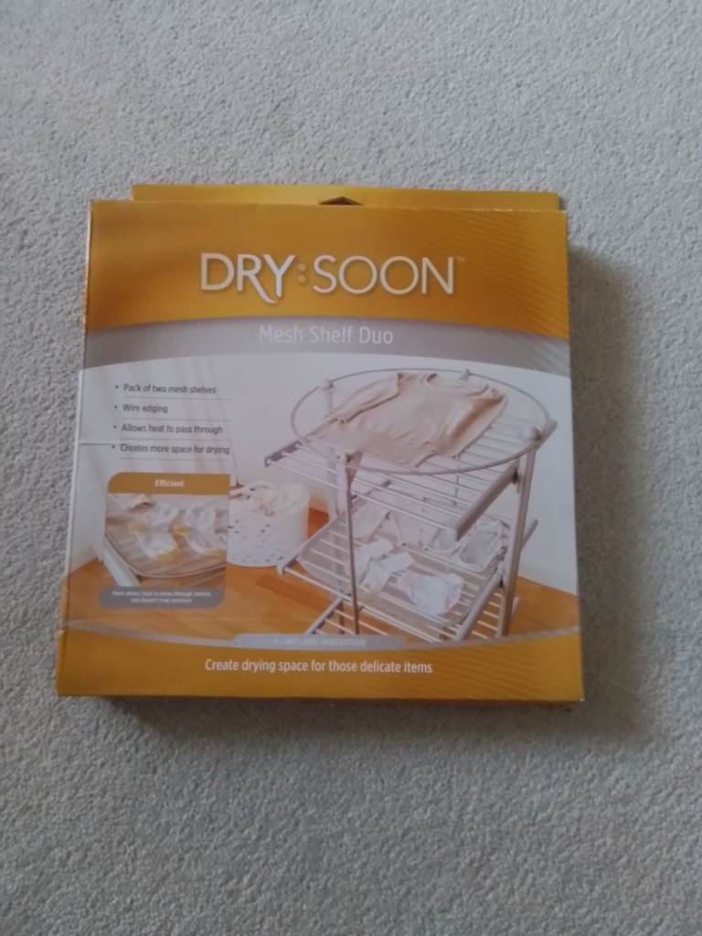 This airer has a cover and 2 mesh shelves, been used only 3-4 times and is genuinely like new.