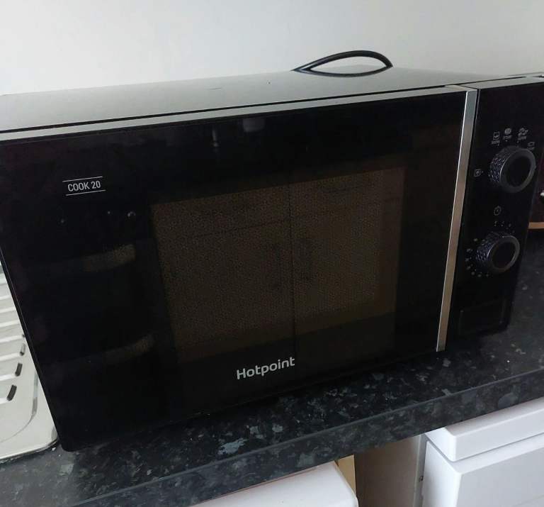 Black Hotpoint 700w microwave in great working order. It's marked inside, has been given a very thorough steam and clean. No visible marks on the outside. Have just purchased a new one.