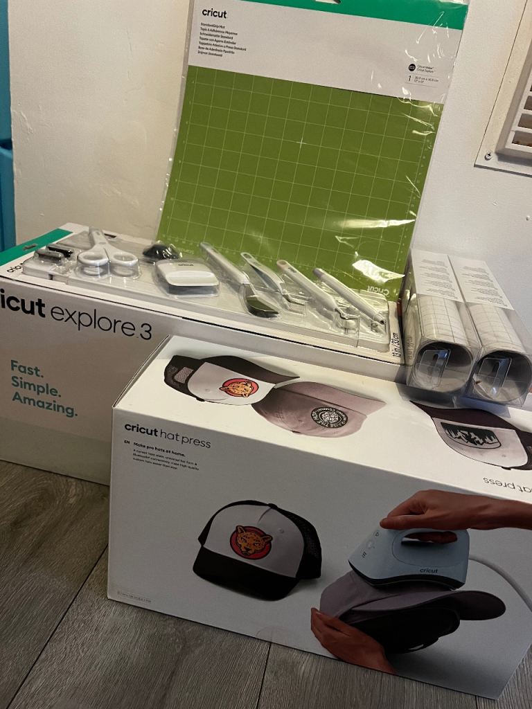 ⭐️offers⭐️Cricut bundle - cricut explore 3, hat press, tool set, grip mat, x2 transfer tape