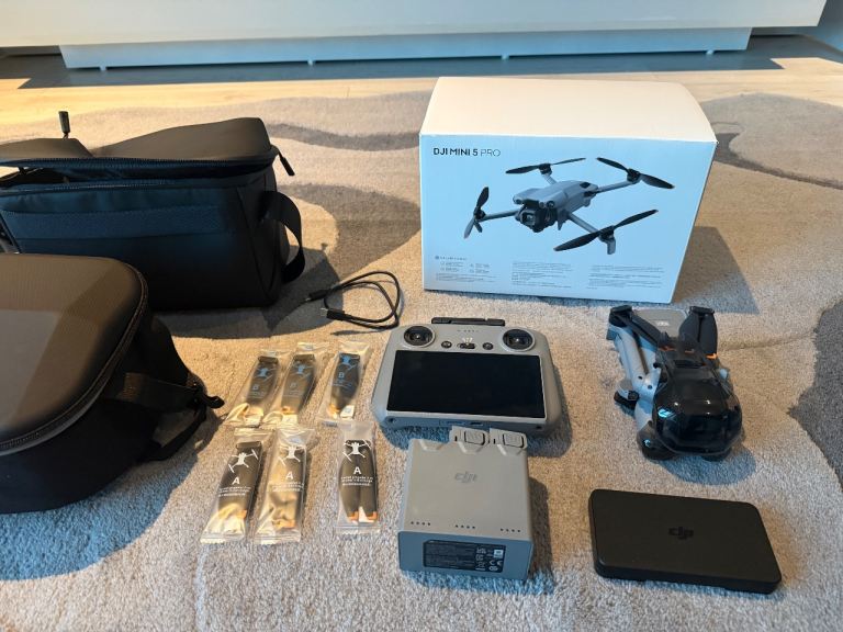 DJI Mini 5 Pro Flymore pack barely used (28mins). Complete with original box and all accessories. Also come with should bag.