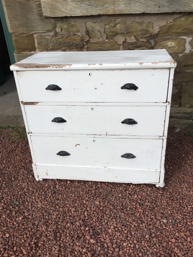 I have for sale this large genuine Victorian chest of draws for sale, the draws as you can see have been painted at some time but I think this is a shame because the wood underneath is beautiful, this set comprises of two long draws and the bottom dr