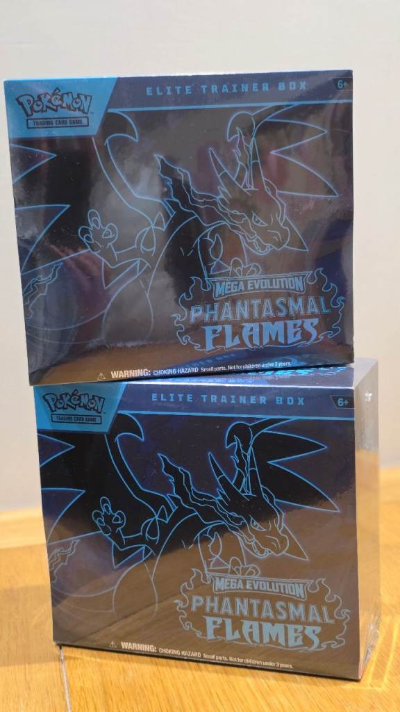 2 Pokémon Phantasmal flames ETBs for sale. 2 for £125 1 for £65