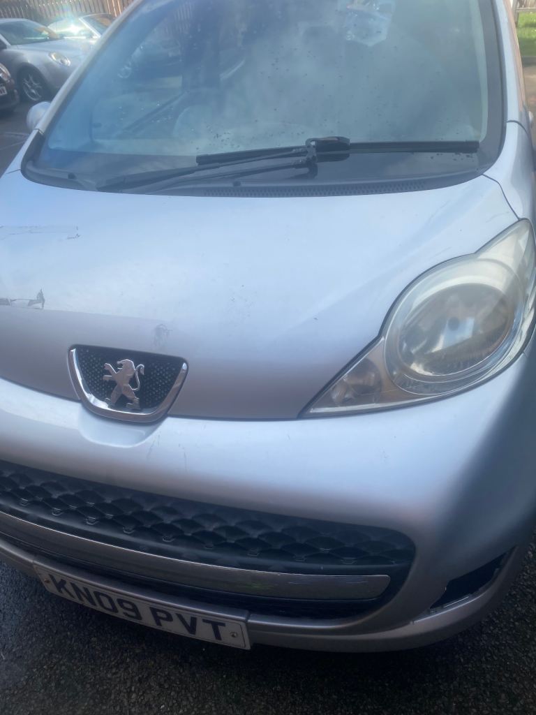 Peugeot 107 in silver, registration KN09 PVT. Shows signs of wear including scratches on the side and front. Headlight looks a bit cloudy, but the car is generally functional. Selling as I've upgraded to a newer model. Collection only fromRaf sal