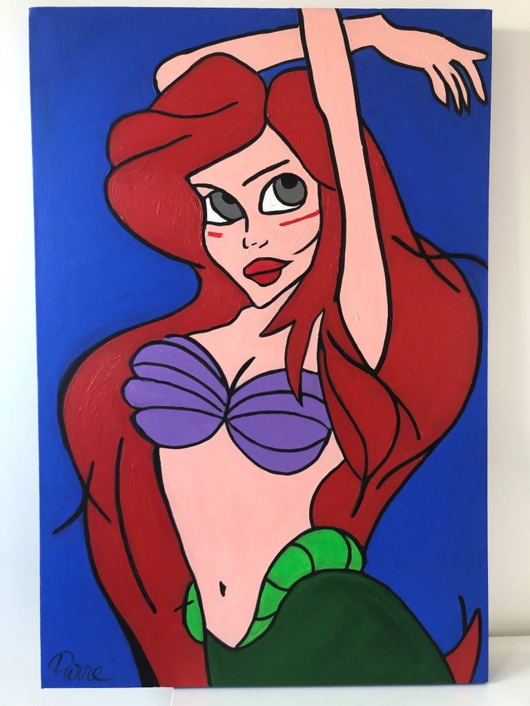 Beautifully done pop arty Disney Princess Ariel painting. Acrylic, on canvas 90x70 cms.