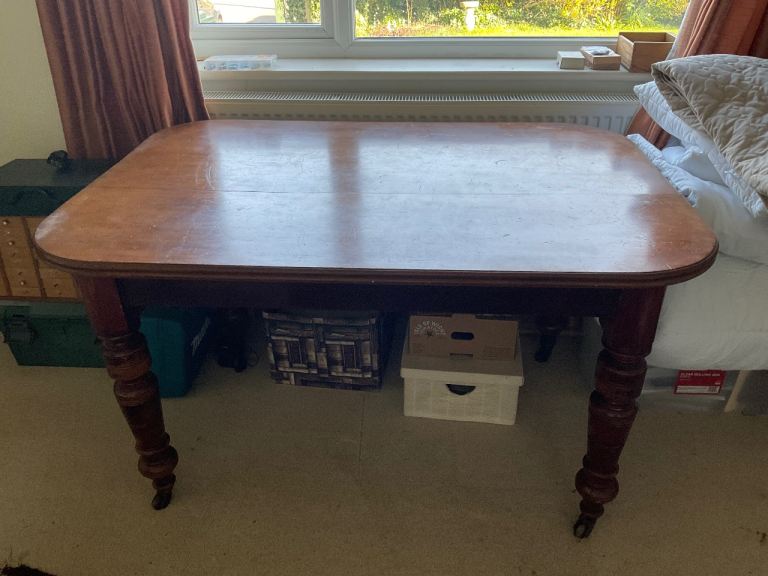 Antique Victorian table on castors (possibly oak) Carved legs Height 74cm Length 130cm Width 91cm
