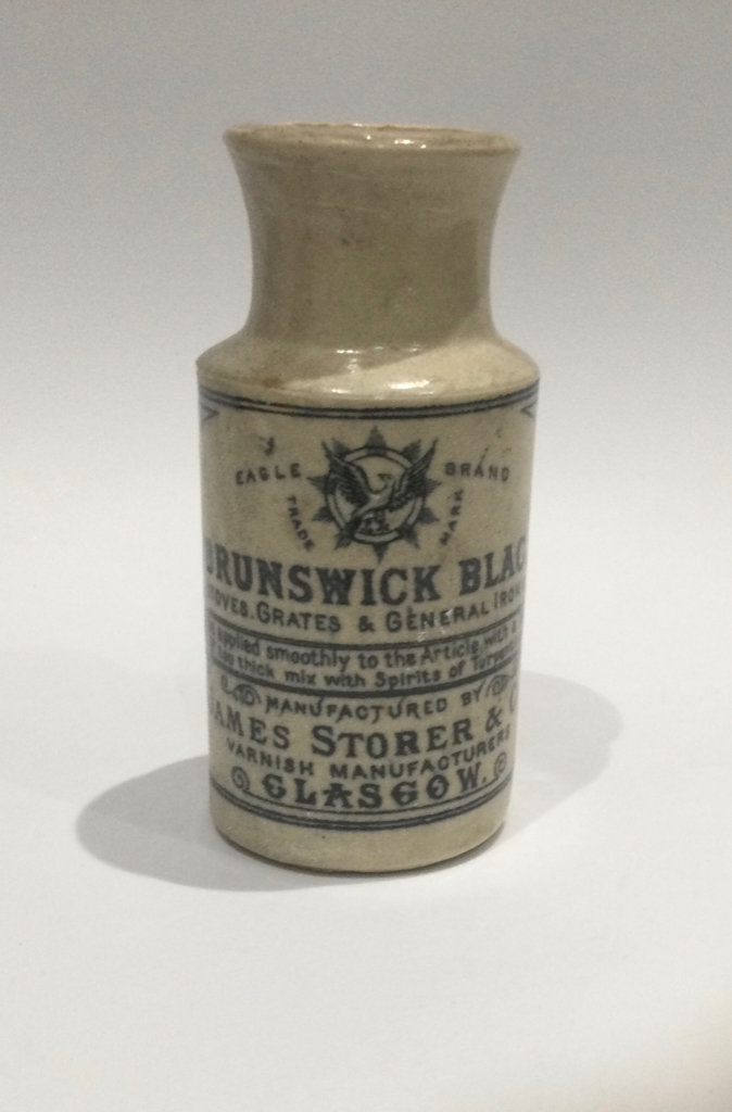Vintage Rare Brunswick Black old Pottery Bottle Jar Antique Stove Blackener container