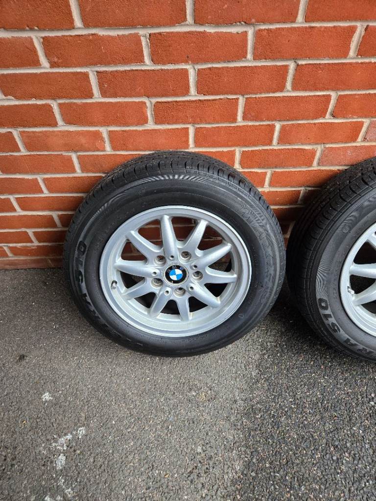 A set of BMW alloy wheels with tyres, in good condition overall. The wheels have a silver finish and the tyres still have plenty of tread left. Ideal as spares or for replacing a worn set. Slight scuffs visible on some rims. Collection preferred in S