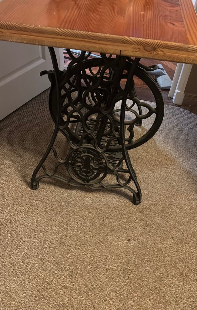 Beautiful singer sewing machine table base with solid wood top. Beautiful condition.