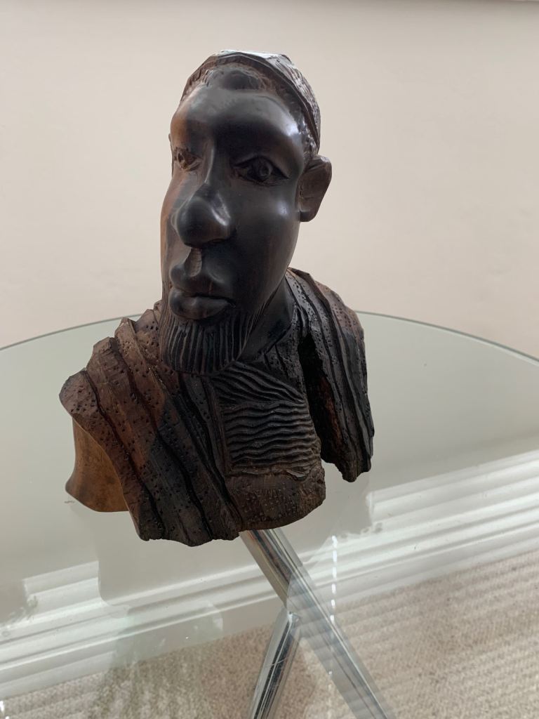 African Tribal Carving from Zebrawood . 23 cm tall x 23 cm width approximately. Rare heavy Hardwood weight 2.02 kilos .