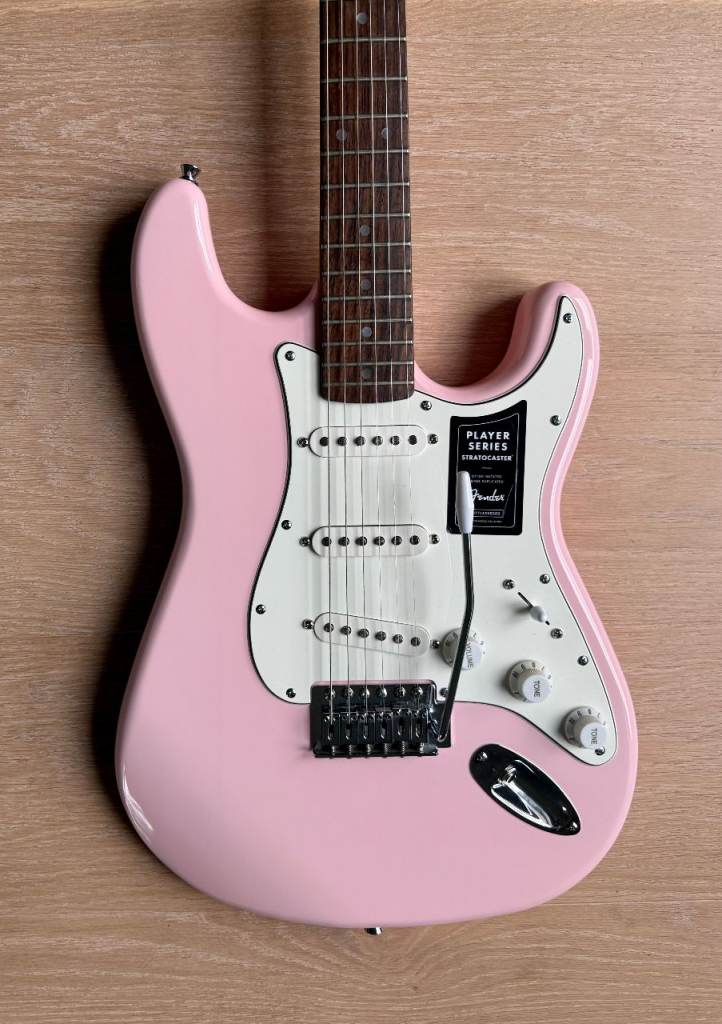 Squier bullet strat in rare pink finish for sale. Guitar is from early 2000s. Plays well and all fully functional.