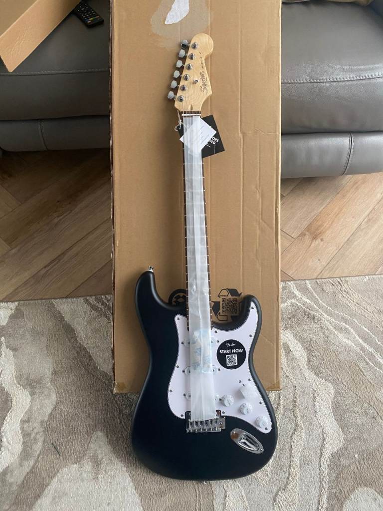 4New boxed Fender Squier black StratocasterNew boxed Fender Squier black Stratocaster S/N CMC124031127 As you can see still in travel packaging with stickers and safety wrapping Perfect Xmas / Birthday gift as boxed Collection L/pool Allerton L18Childwall, Merseyside£99
