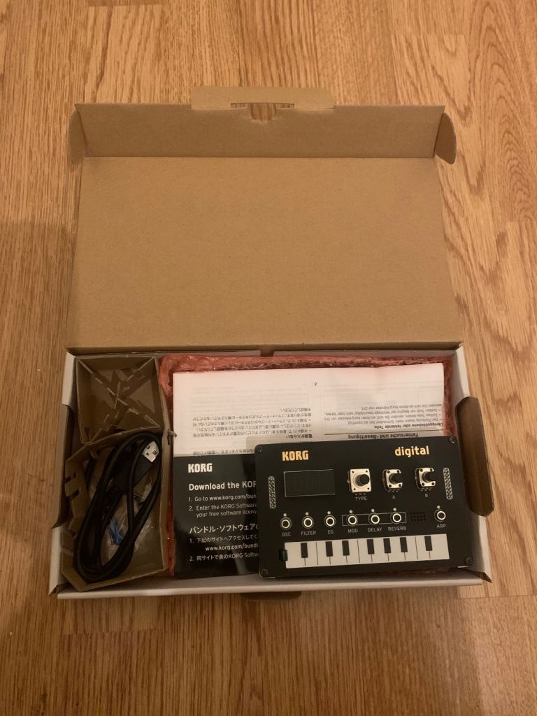 Opened and tested and re-boxed after a few days. Purchased directly off Korg as no stock was available elsewhere. Bank transfer no cash please. This was the first Korg synth for me to purchase since the M1 in 1989 and really do not like it. I unfo