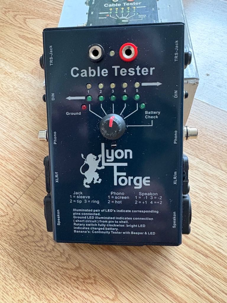 This unit is new never used Lyon forge tester for most leads and cables used with band / group Jack plugs - phono - speaker- etc.