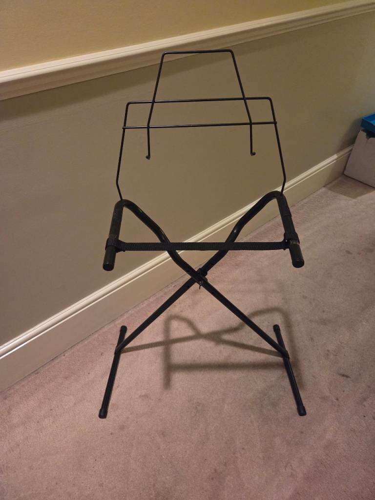 Adjustable keyboard stand in good working condition, perfect for any musician. Made from sturdy metal, it has some minor cosmetic wear but nothing affecting its function. Comes with the original instructions, making setup straightforward and easy. Gr