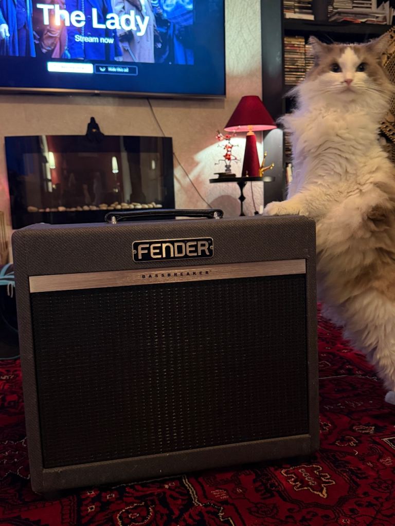 Fender Bassbreaker 15. Fully serviced and retuned, used for home use only Some cosmetic scuffs but sounds perfect Cat not included