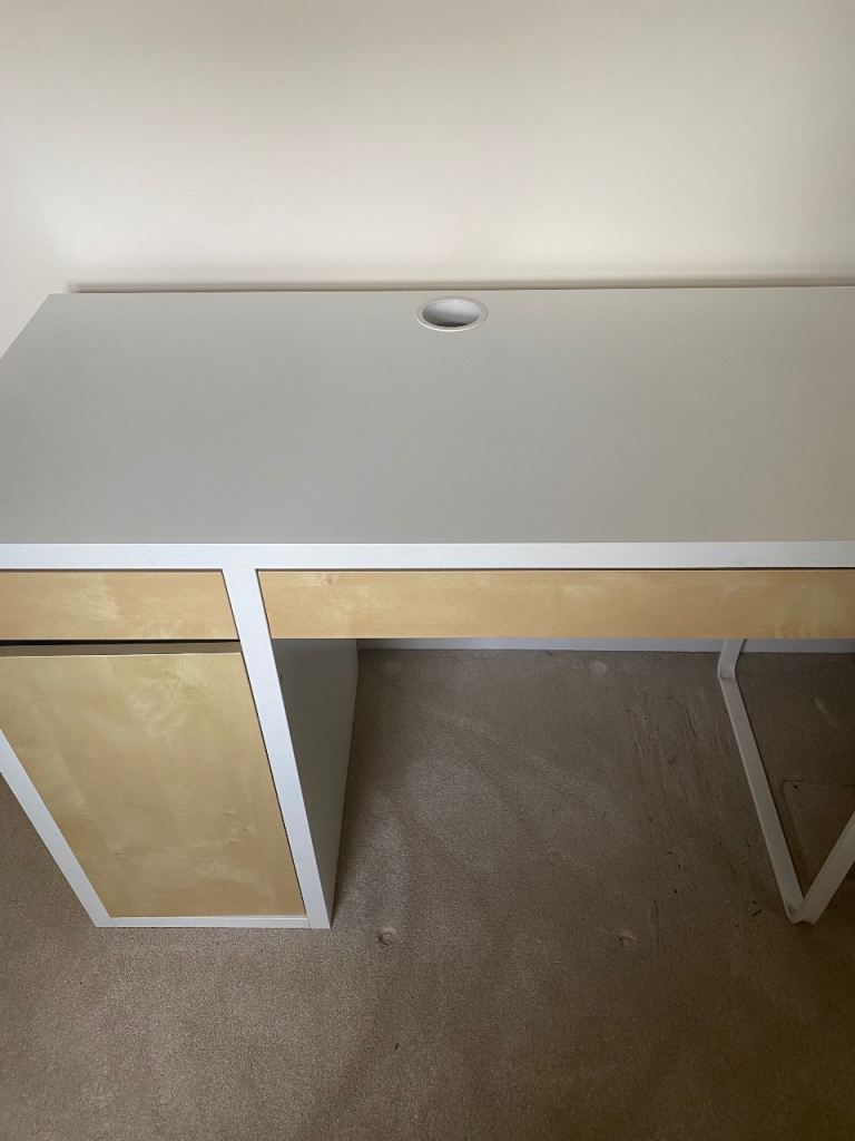 Ikea small desk and folding chair. Mint condition as not used just sits in spare room. Size 73cmw x 50cmd x 75cmh. Price £20 for both no offers. Collection only. Braishfield area.