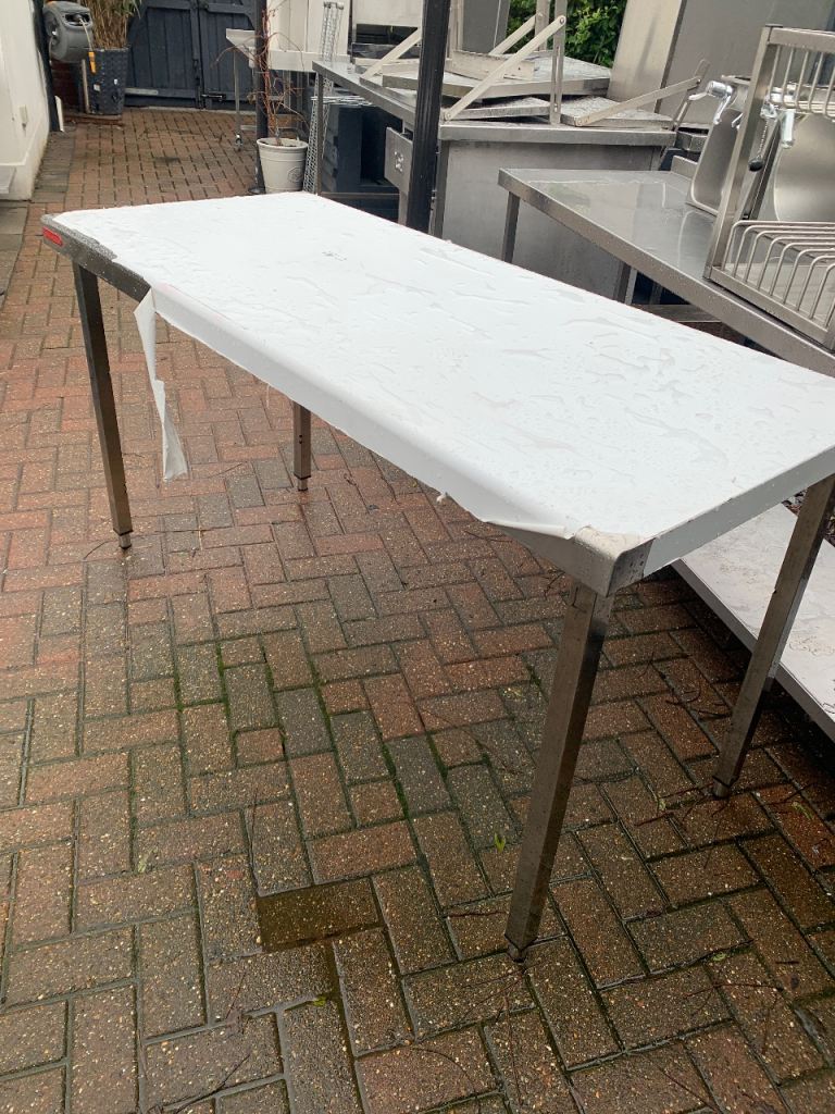 Brand new stainless steel table with covering still on, brand new legs. This one is insulated and very heavy duty top, it may need a shelf or strength bar at bottom. Sold as is viewing welcome. 160cm x 70cm x 85 high adjustable. Very heavy.