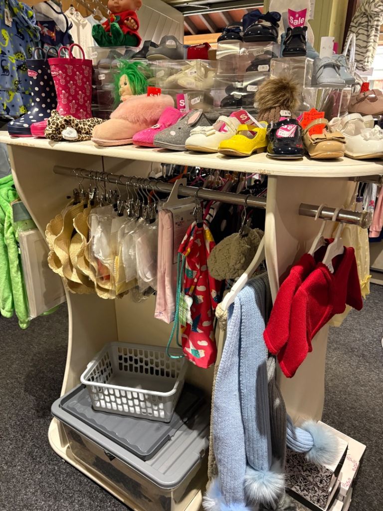 Here we have a large shop wooden clothes rail/ stand in used condition clothes don’t come with it a great piece for your shop