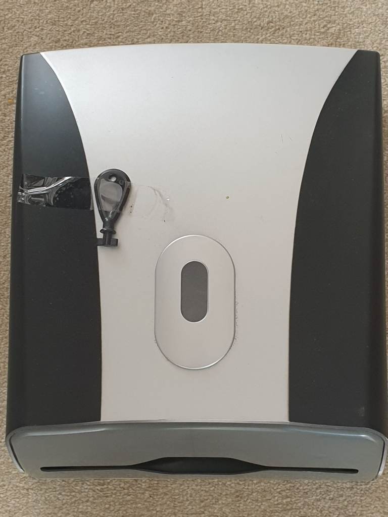 Paper towel holder with key. Used in a salon. Good condition at a small fraction of the cost of a new one. Also have toilet tissue holder to match also with key. #gotstuffgetcash