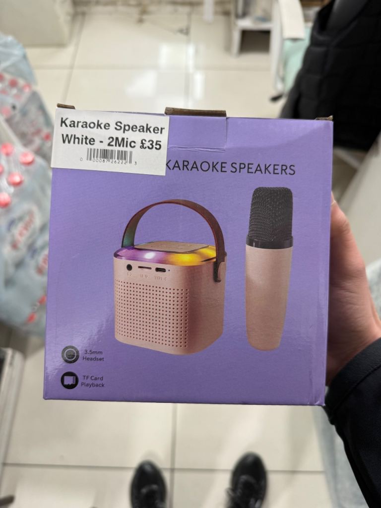 Brand new Bluetooth karaoke speaker with 2 wireless microphones. Perfect for: • Parties • Kids karaoke • Home entertainment Features: • Bluetooth connection • LED lights • Portable speaker • Rechargeable battery • 2 wireless microphones