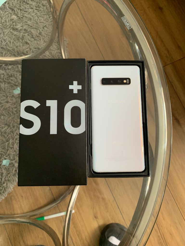 Samsung galaxy S10 Plus white black in pristine condition, in box with screen protector. 128gb ram. Buyer collects from my home address.