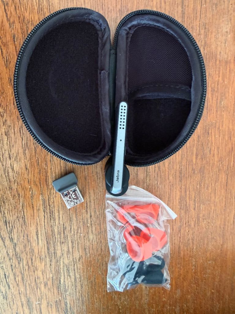 Rarely used Jabra Bluetooth headset. Case, USB dongle and parts all included.