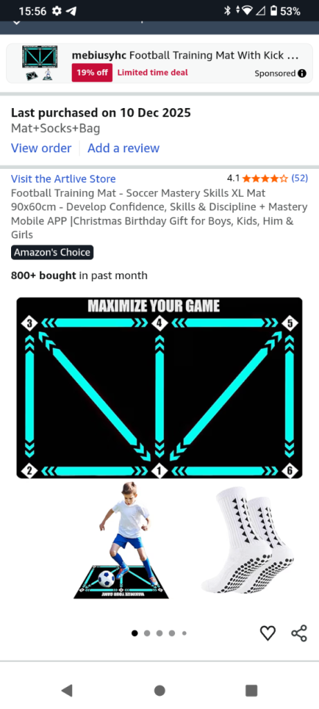 New football training mat with pair of socks (unopened) duplicate Christmas present collection from Cwmann