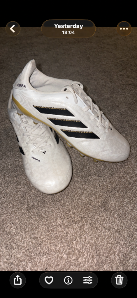 Kids Adidas Copas football boots for sale. Size 2.5 worn twice on Astro. Great looking boots, sadly wrong size for my son. Buyer to collect £20