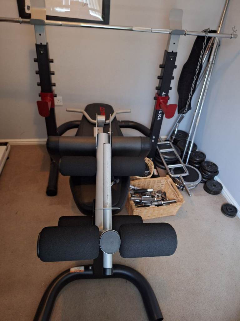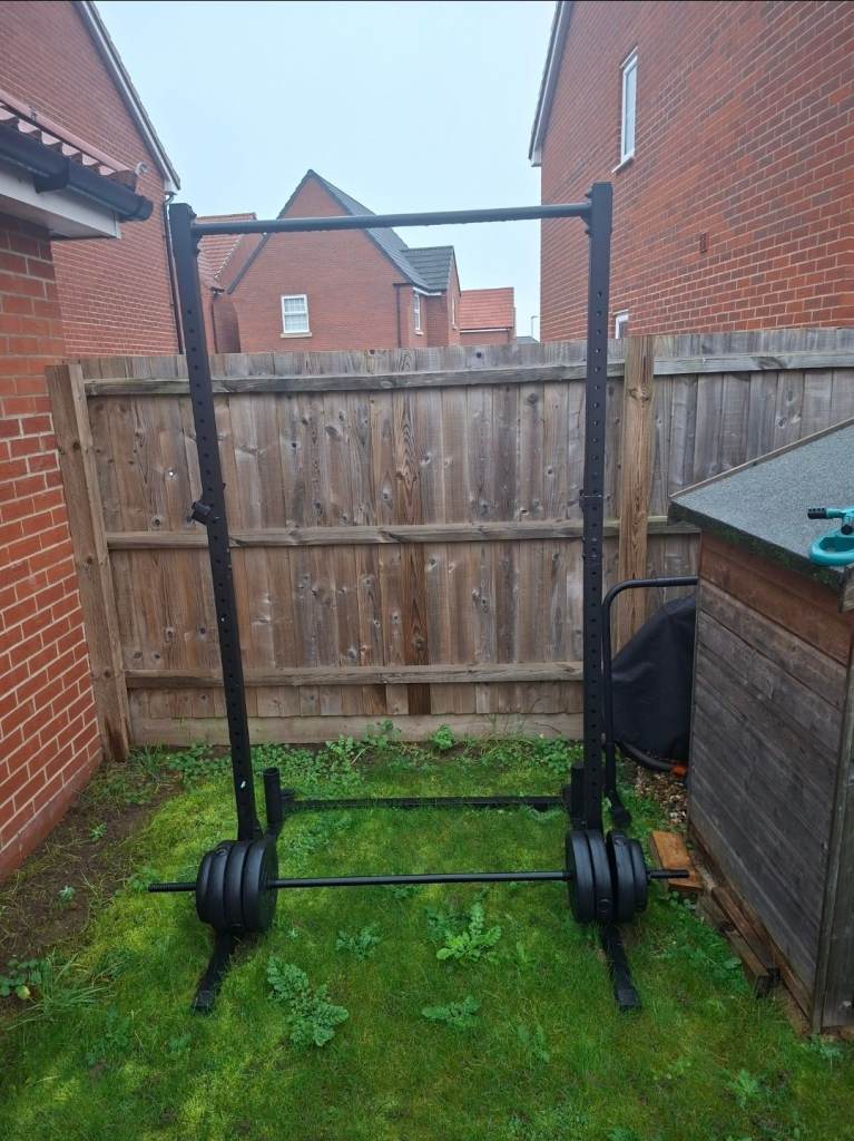 🏋️ Power Rack with Pull-Up Bar & Bar Storage Strong metal rack, suitable for pull-ups and storing a barbell Power rack with pull-up bar & bar storage: £50