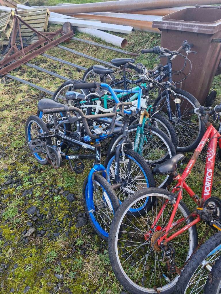 Bout 13 bikes some need little work and two seater go Kart selling as lot