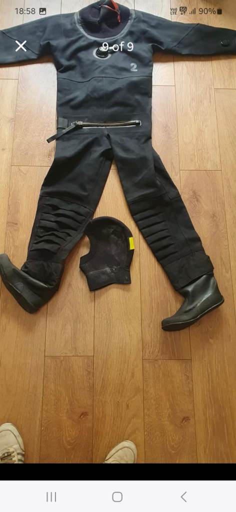 This is a EX ROYAL NAVY kevlar membrane dry suit Size 2 medium High 5.8 Chest size 40 " Boot Size 9 /10 It's is made from a hard wearing kevlar weave material. Heavy-duty shoulder, entry zip and another zip in the groin area. Apex suit