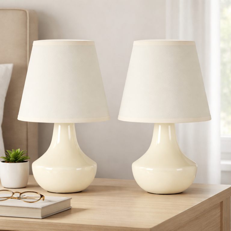 Add instant warmth and elegance to your home with this beautiful matching set of two cream ceramic table lamps. Featuring a glossy pear-shaped base and classic neutral shade, these lamps are perfect for bedside tables, living rooms, hallways or styli
