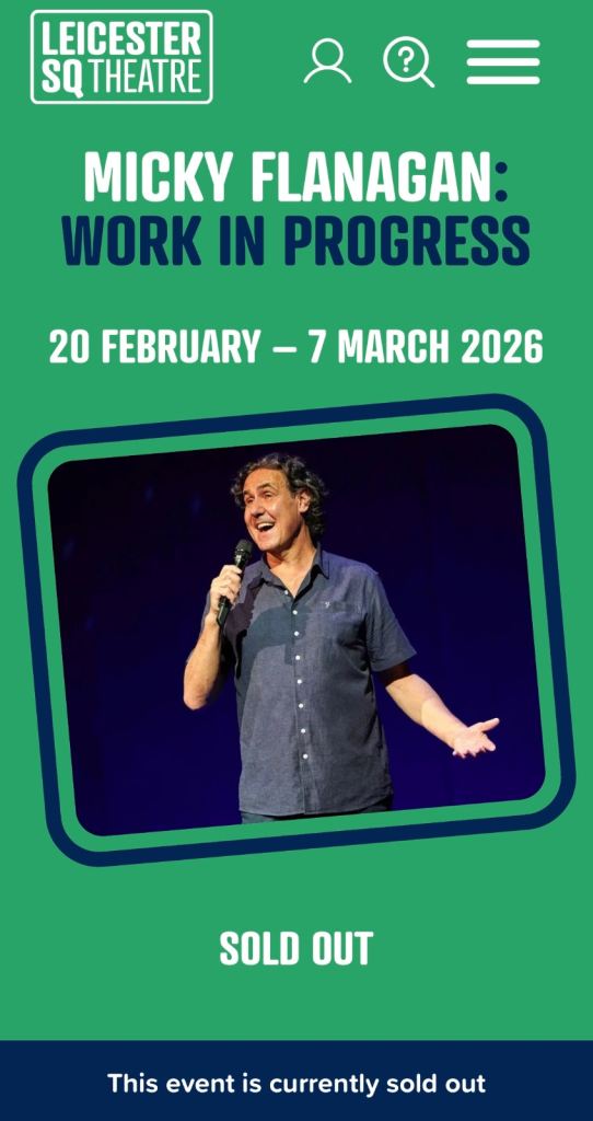 I have 2 tickets for this intimate ‘Work in Progress’ show at Leicester Square Theatre, London on Saturday 7/3/26. Show starts at 4.00pm. Latecomers won’t be allowed in. The price is for the pair of tickets. This is a rare chance to see h