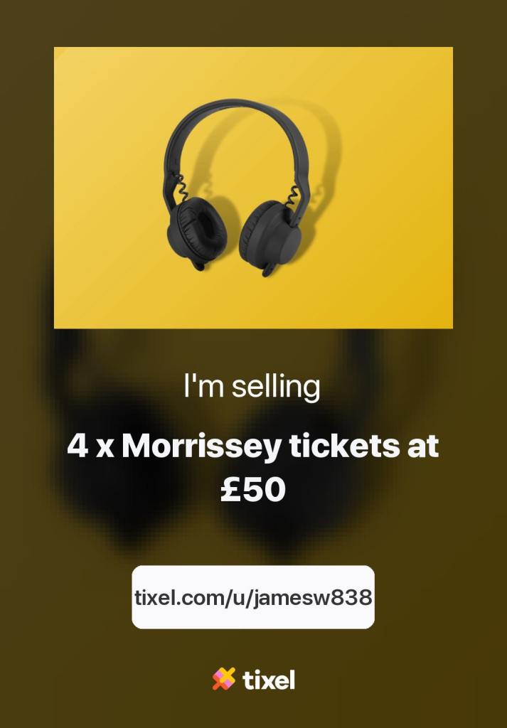 1Morrissey ticketsHis one and only show in the UK this year. 4 tickets available for £50 each, open to offers.Hull, East Yorkshire£200