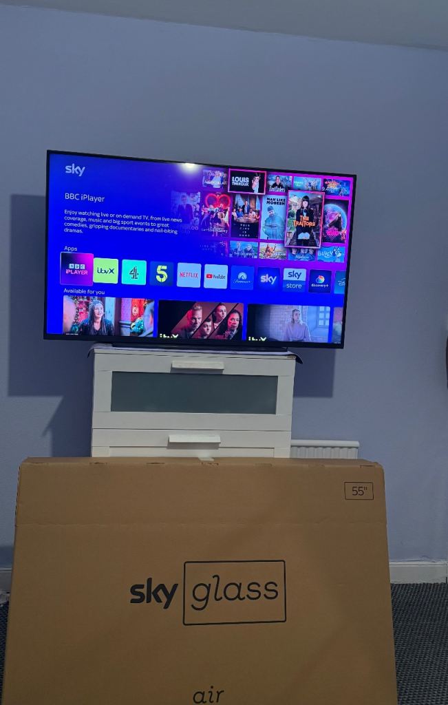Selling a Sky Glass Air 55-inch 4K Smart TV, purchased around 2 months ago. TV is in excellent, like-new condition and works perfectly. ✔️ Original box & full packaging included ✔️ No scratches, marks or faults ✔️ Factory reset ✔️ Smoke-free h